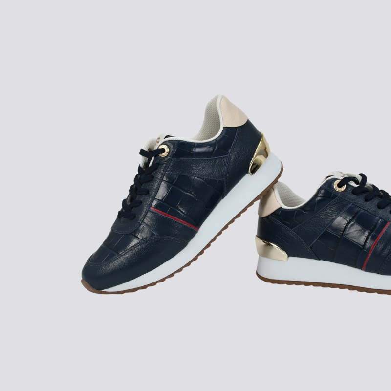 O Tênis Jogger Azul Marinho em Couro une conforto e personalidade em um modelo versátil, perfeito para quem busca um visual moderno aliado à praticidade do dia a dia. Feito em couro de alta qualidade, apresenta textura elegante que dá destaque ao tom azul marinho.